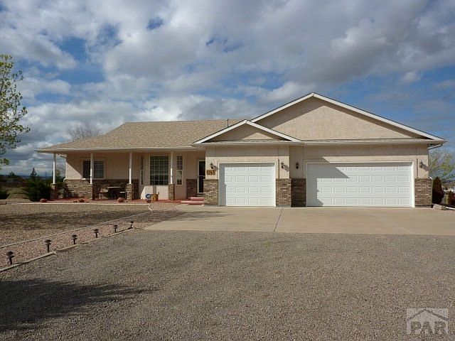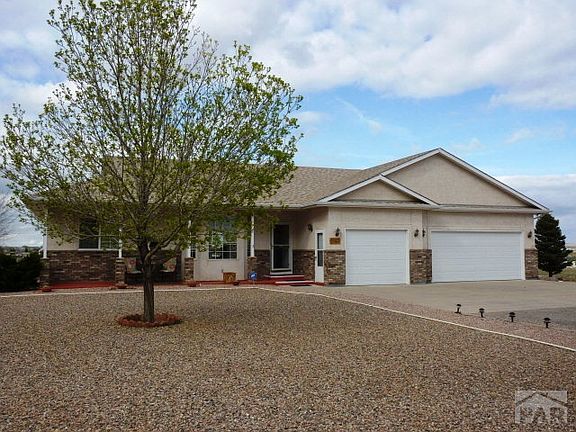 Beautifully maintained 3 bed/3 bath rancher with 3-car garage and finished walk-out basement! Nearly 3,000 sq. ft. of living space on 1 acre. Bright and cheery, open kitchen with new refrigerator and dishwasher. Large dining area walks out to covered deck. Main level laundry. Family room has gas log fireplace. Office/study in basement could be 4th bedroom but has no closet. Check out the oversized 34'x 13' workshop in basement with it's own entrance--a dream for the handyman/woodworker! The yard is meticulous and fully landscaped with low maintenance gravel, trees & plantings. The expansive mountain views can be visually enjoyed from the 33' covered deck. Outside lights are on a timer. Attic has extra insulation. Great location near Pueblo West shopping centers and Hwy 50, or for commuting north to I-25.