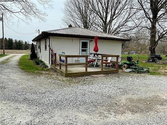 Affordable country living with this cute solid built 2 bedroom 1 full bath home. Home features an eat in country kitchen and a nice size living room with a big picture window and new laminate hardwood floors. Outside has firepit, nice yard that boarders farm ground. Home has a 12x 12 back deck and a nice drive way with plenty of room for parking. comes with a nice mini barn for storage