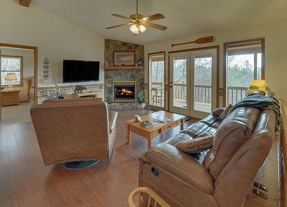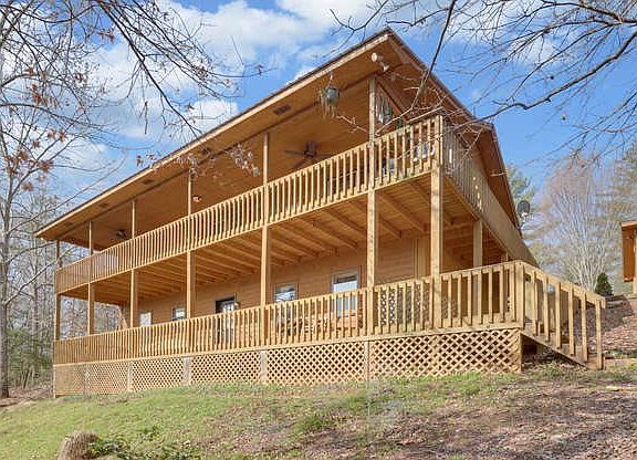 Enjoy the peacefulness of this semi-private location which has the Chattahoochee National Forest and Lake Nottely across the street. This beautiful rustic home sits in a small community of homes and has gorgeous views of the North Ga. Mountains. Two bedrooms with walk outs to porch and two baths on main floor. Open great room with hardwood floors, cathedral ceiling, and stone fireplace with gas logs. Nice kitchen with granite counter tops and island with bar. Finished basement has office/bedroom/craft room, bath and large second living area. Two levels of decks, screened porch, detached garage and outdoor fire pit. You will feel at home as soon as you walk in.