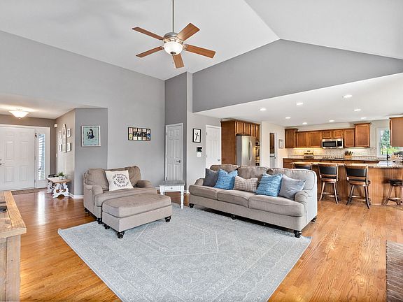 This stunning custom built ranch sits in the highly desirable neighborhood of Heartland Circle. Featuring an open space concept kitchen filled with soft close cabinets, granite countertops, double oven, and breakfast bar area, overlooking the dining room (sun room) that beams in rays of natural light. There are three spacious bedrooms conveniently located on the main level, including the significantly sized master bedroom and en-suite master bathroom. The other two spacious bedrooms are in the full, finished, basement. The basement has been completely renovated and set to entertain all friends and family. It boasts a massive family room, updated bathroom, bar area, and tons of storage! Step outside to the gorgeous fenced in backyard displaying a composite deck (no maintenance), pergola for privacy, stamped concrete patio with fire pit, and and open area for the kids to run and play. Many updates were made those including: roof (2023), washer and dryer (2023), dishwasher (2023), water heater (2023), remodeled basement (2021), bluetooth garage door opener (2023), and much more! The three car garage is heated with ample storage. This is your perfect home!