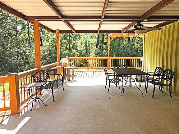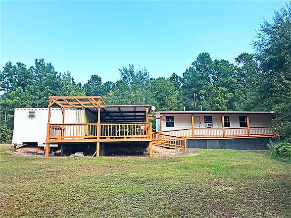 Unrestricted 9.44 wooded acres w/968 SF well-maintained 2Bd/2Ba home w/large covered patio/deck and double converted railroad containers shop/storage building. A great opportunity for a weekend getaway, hunting camp, or full-time residence. Several cleared areas but mainly wooded w/small creek (approx 4' deep, 6'-8' wide) running diagonally thru mid-to-bottom half of property. Sold ''AS-IS.'' Could use interior paint and floor coverings. Lots of deer and hogs. 50% Mineral Interest negotiable.