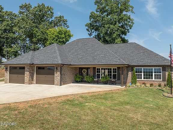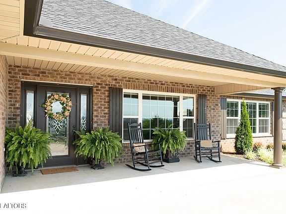 Experience the ultimate in mountain living! This stunning home offers breathtaking views and features 3 bedrooms, 2.5 baths, and a spacious open floor plan. Elegant trim on doors and windows adds a touch of sophistication throughout. Love to entertain? The back patio is perfect for hosting parties and family gatherings, allowing you to focus on fun rather than yardwork. Step into the great room, where upgraded lighting and coffered ceilings create a warm and inviting atmosphere. The kitchen is a chef's dream, complete with a large island with seating, floor-to-ceiling cabinets, a chic tile backsplash, and two convenient pantries. A dedicated desk area provides an ideal spot for remote work or homework sessions. The jack and jill bath between the two guest bedrooms ensures plenty of space and convenience.The primary bedroom is a tranquil retreat with tray ceilings and stunning mountain views. Its luxurious ensuite bath features a walk-in shower with a glass door, a spacious linen closet, water closet, double vanity with upgraded lighting and mirrors, and a large closet with built-in cabinetry. All bedroom closets have been upgraded with built-in cabinetry, offering ample space for hanging, drawers, and shoes. Don't miss the chance to make this beautiful home yours. Plus, with B&B trash service, the trash is picked up at the garage doors. Relax on the tranquil covered front porch, taking in the beauty of the mountains.