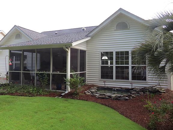 Spacious home in quiet community. 3BR/2BA home with est.3006 Total SF and est.2302 Heated SF, with extended bonus room, built in shelves & 100 Sq. Ft. Walk in storage space in attic. Open floor plan with split bedrooms. Ceramic tile in foyer, master bath, & guest bath. Upgraded white cabinetry with raised panel in enlarged kitchen with loads of cabinets, bathrooms, & laundry room. Master bath has cultured marble whirlpool garden tub, shower, dual sinks, and 42” X 42”acrylic glass block window The guest bath has cultured granite tub & sink counter top, and Solar tube lighting. This outside speakers installed on screen porch & wired to stereo system, plus the great room wired for surround sound system. Cable connections are in the great room, master bedroom, front guest bed room, & bonus room. The hot water heater is an oversized 80 gallon. This home boast a 14’ X 16’ screen porch and 12 X 17’ cement patio with a 220 volt line for hot tub. The outside has custom professional landscaping with Zoysia grass lawn, complete with irrigation system. A fenced backyard with inground pond including water fall, overlooking woods. makes this yard a private paradise. Community pool. Low HOA’s Close to schools, shopping, public parks, hospital, doctors, airport, white sandy beach and the blue Atlantic ocean. Between the activities of Myrtle Beach and Charleston. Owner is a realtor.