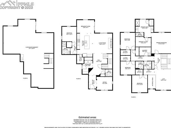 Discover the epitome of luxury living in the sought-after Terrain subdivision of Castle Rock. This stunning 5-bedroom, 4-bathroom, 3-car tandem garage home sits on a desirable corner lot, exuding both elegance and functionality. Step inside and be captivated by the abundance of natural light that illuminates the gleaming laminate wood floors throughout. The open-concept design seamlessly connects the spacious living area, with a cozy gas fireplace and gourmet kitchen, making it perfect for entertaining. Enjoy your morning coffee in the spacious sunroom, or perhaps outside on the covered deck. Indulge in your culinary desires, with top-of-the-line stainless steel appliances, double ovens, a large center island, granite countertops, and 42” cabinetry. The main level boasts a bedroom and a bathroom, providing flexibility for guests or multigenerational living. You will also appreciate a dedicated office space on the main floor. Head upstairs to the luxurious primary suite, complete with a spa-like en-suite bathroom featuring dual vanities with an oversized shower. You will also find 3 additional bedrooms, a spacious loft, a dual entrance full bathroom and full laundry room with a utility sink on the 2nd floor. This beautiful home also features a large walkout unfinished basement, ready for your touches. The Terrain community offers exceptional amenities, including parks, trails, pool and a clubhouse. Don't miss out on the opportunity to call this beautiful home your own, where you will enjoy comfortable and luxurious living in Castle Rock's esteemed Terrain subdivision!