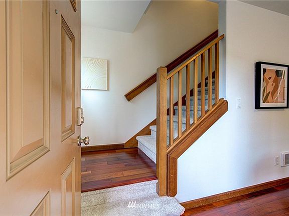 Spacious move-in ready 2 bed/2.5 bath townhouse within walking distance to all that Green Lake has to offer. Enter into the den/office on the lower floor with access to the fully fenced back patio w/ turf. The lower floor is complete with a bedroom and full bath. Move upstairs to the main floor and find the kitchen with SS appliances and granite counters. Opens up to the comfortable living room with gas fireplace and half bath. On the third floor you'll find the spacious primary bedroom with vaulted ceilings, skylights, large walk-in-closet, spacious ensuite with double sinks. Washer/dryer located in the upstairs hall. 1 car garage +1 off street parking spot in front of garage. With no HOA, it lives like a single family home.