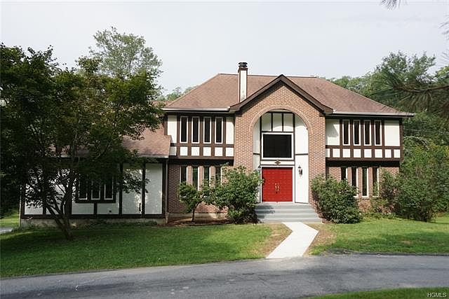 Spacious tudor style colonial on private and flat 2.5 acres. Elegant vaulted foyer with sweeping curved staircase. Formal living room with wet bar and fireplace, formal dining room, family room, and large eat-in-kitchen leading to deck. Freshly paint throughout. Upper level lives like a 4 bedroom and boasts beautiful hardwood throughout. 2 bedrooms have large walk-in-closets and the master bath is generously sized as well. Expansive lower level with multiple rooms and walkout to patio has certificate of occupancy and is perfect for extended family or au-pair accomodations. Price reflects need for deck repair/replacement and personal updating. With a little love, this spacious home can be brought back to it's original elegance. Priced to sell!
