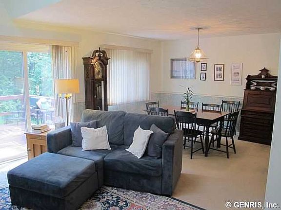 Very Light and Well-Maintained 2BR, 2.5BA Townhouse w/ Open Flr Plan Just Minutes From Victor Schools and Eastview Mall! Feat. a Large Eat-In Kitchen w/ Breakfast Bar, Dining/Living Rm Combo, 2-Story Foyer, Generously Sized Bedrooms, & Full Basement w/ Cedar Closet and Egress Window (Could Easily be Finished for Kids Play Room or 3rd BR). The Cathedral Ceiling, Skylights, & Gas Fireplace in Living Room Create a Cozy and Warm Ambiance to Settle Down w/ a of Glass of Wine and Good Book!! UPDATES: New High Eff. Furnace and A/C in 2012, Roof/Skylights in 2007. LOW ONTARIO COUNTY TAXES!!
