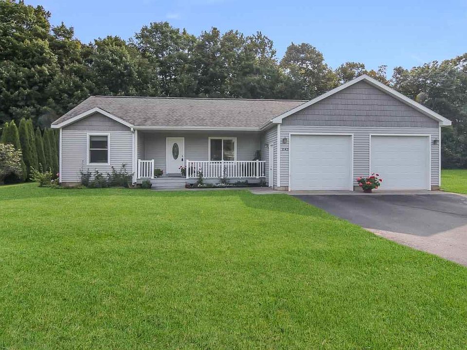 Charming Ranch home in highly desirable South Creek Neighborhood. Greet your guests on the covered porch with its low maintenance composite decking. This home features an Great Room open floor plan with spacious kitchen, living and dining melding into a free flowing space. Back deck is easily accessible from the dining room ideal for entertaining. Bedrooms are a split plan, master bedroom with private bath and gorgeous double shower and walk in closet on the south end of the house and the other 2 bedrooms on the other side of main living area with their shared bath. Home also features a full unfinished basement with 2 egress windows and plumbed for a third bath. This is wonderful expansion space and can be custom designed to fit your needs, perhaps a family/media room, offices or bedrooms plus another bathroom or keep it for excellent storage. Attached fully finished 2 Car Garage. Location is absolutely perfect, cul-de-sac street and the home backs up to wooded green belt for privacy and stunning views. Yard is landscaped with lovely perennials and has a fenced garden area as well as a storage shed. All offers will be presented on Monday September 21 at 4:00 pm