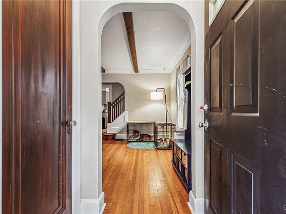 Welcome to this charming home with a wonderful blend of comfort, functionality, and charm. The first floor features an inviting layout, beginning with a large screened-in front porch, ideal for relaxing mornings & evenings. Step inside to a foyer that leads to a beautiful living room, boasting wooden beams, a wood-burning fireplace, and built-in bookshelves that add character and warmth. The adjoining dining room offers a delightful space that leads to an expansive deck in the fenced backyard. The kitchen, though compact, is highly functional. A conveniently located half bath and a versatile nook next to the stairs, perfect for a desk or reading chair, add to the first floor’s appeal. Upstairs, you’ll find 3 well-appointed bedrooms, a modern full bath, and handsome built-in wood cabinets and a laundry chute. The walk-up attic provides excellent storage options. The full basement includes a workshop, additional storage, & laundry area. This home features beautiful hardwood floors throughout and exudes character and charm. The detached two-car garage and corner lot location enhance its appeal. MULTIPLE OFFERS RECEIVED. Offer Deadline is 10 am Sunday 8/18. The Open House is Cancelled.