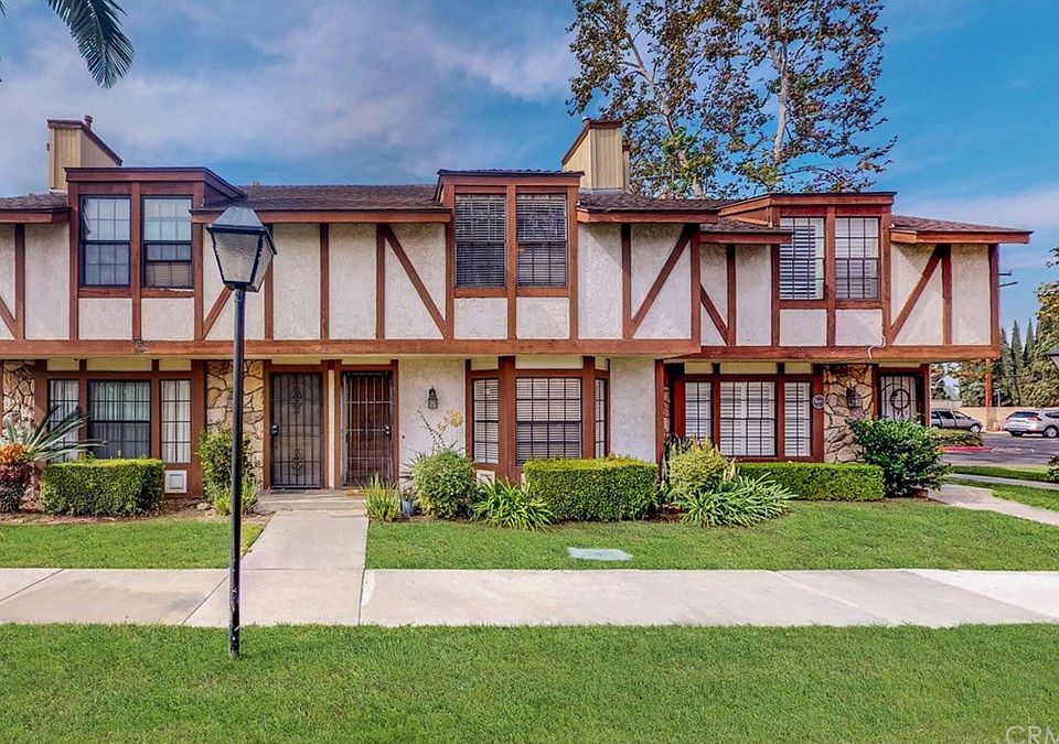 Beautiful Chelsea Park Estates townhome in quiet park like setting. As you walk in to the downstairs, there is tile flooring that leads to the rock fireplace. The kitchen has been remodeled with new counter tops. The best part of this home compared to the other units in this community is that is has an attached garage and a garden patio. Upstairs you have 2 master bedrooms with en-suite bathrooms. There is a new A/C that has been installed in the home. The HOA covers the trash, water, and maintenance. Don't miss out on this gorgeous Fullerton townhome!