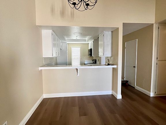 Freshly remodeled condo available for rent. New floors, fresh paint on walls, ceiling, cabinets & interior of cabinets. Spacious rooms with ceiling fans. Closets are large with built in shelves. Freshly glazed kitchen tile countertops & modern light fixtures. Microwave, dishwasher & electric range-oven are included. Super cute backyard with covered patio. Single car garage plus a guest permit for parking in common area parking spots. Laundry area in hallway of the condo. Very close to the 15 & 91 freeways, schools & shopping centers offering convenience & comfort. HOA managed with pool & jacuzzi. This beautiful condo will provide a safe & convenient space for you to relax and enjoy. Tenant pays for all utilities & is responsible for maintaining the backyard. Last month's rent due upon signing. No pets allowed.