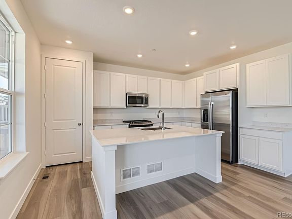 This stunning new Chelton 2-story in Sunset Village features, 5 beds (4 main home and 1 next gen), 4.5 baths (3.5 main home & 1 next gen), laundry (both main & nextgen), living room (nextgen), great room (main home), kitchen (both main home & nextgen), loft, unfinished basement and 3 car tandem garage. Beautiful upgrades and finishes including luxury vinyl plank flooring, stainless steel appliances (main home only) and more. Lennar provides the latest in energy efficiency and state of the art technology with several fabulous floorplans to choose from. Energy efficiency, and technology/connectivity seamlessly blended with luxury to make your new house a home. What some builders consider high-end upgrades, Lennar makes standard. Colorado living at it’s finest. Close to dining, shopping, entertainment & other amenities.Don’t wait – this community will sell out quickly! Welcome Home! 3D walkthrough tour is a model only and subject to change.
