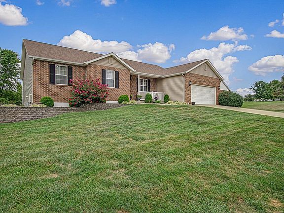 Beautiful 4 Bedroom/3 Full Bath ranch style home located in Busse Estates in Red Bud! Step inside to see the charming interior of the home. The spacious family room has a beautiful cathedral ceiling and gas fireplace. There is a separate dining room that sits at the front entrance of the home that leads to the kitchen. The living room leads to the well appointed kitchen featuring ample cabinet storage, eat-in kitchen bar/island and sliding glass doors that lead to the back deck. Down the hall, you will find a full bath, 2 bedrooms and a large master bedroom that features a large walk in closet, full master bath with a tub and separate shower. The finished basement includes a family room area, full bathroom, bedroom and a large closed off storage room. 2 car oversized garage and main floor laundry! Don't miss out on this charming home!