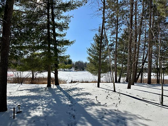 This impeccably maintained rambler has a full walk-out basement, thoughtfully designed for multigenerational living. Just a stone's throw away, enjoy 10 feet of deeded access to Horseshoe Lake, complete with a dock. The main floor features three bedrooms, vaulted ceilings, three sky lights, creating a bright and airy atmosphere. The modern kitchen boasts stainless steel appliances, and a stunning quartz countertop island, perfect for casual meals. Relax in the living room that opens to an expansive deck, ideal for entertaining. The primary suite offers a walk-in closet, a private 3/4 bath, and patio doors to the deck. The lower level is a separate living space, featuring a bedroom with two closets, a full bath, a living room, and a kitchen/dining area. Privacy doors between levels make it ideal for family, rentals, or a vacation rental. Nestled on a private 2.5 acres wooded lot, this home includes energy-efficient features like insulated concrete walls and in-floor heating.