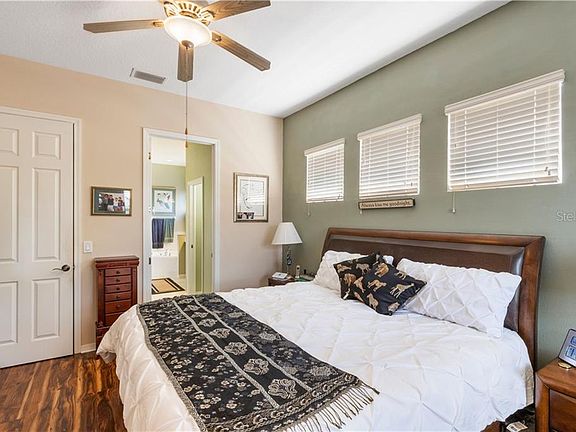 - Interior Features: Ceiling Fans(s), Eating Space In Kitchen, High Ceiling(s), Master Bedroom Downstairs, Open Floorplan, Split Bedroom, Walk-In Closet(s), Solid Wood Cabinets, Thermostat, Kitchen/Family Room Combo, Solid Surface Counters, Built in Features
