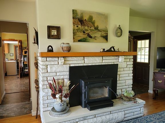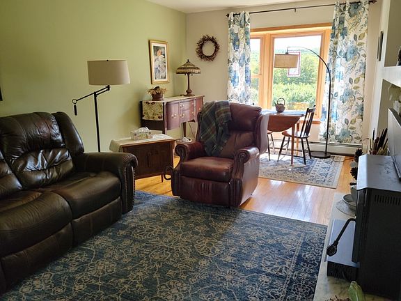 Beautiful colonial on 2.5 gorgeous acres with circular drive. Very well-kept home features 4 beds, 2 1/2 baths, den, kitchen open to dining room, living room w/ fireplace & all have updated windows and lovely views. Nice set-back from road, two gardens, fruit trees, large deck, garage w/ small workshop, shed and plenty of yard for fun! Den could make a 5th bedroom if needed. Full basement is very clean & has plenty of storage & the half bath.
