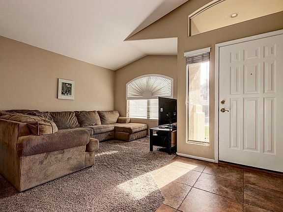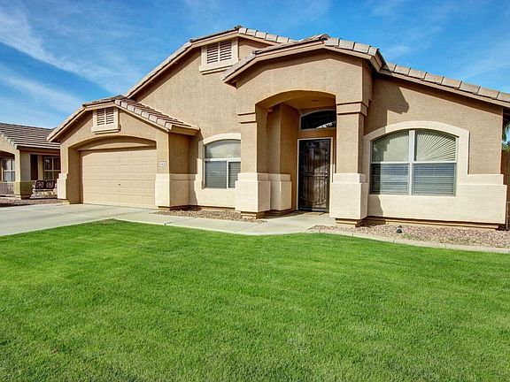 Beautiful single level home in Mesa. Soaring ceilings and a warm color palette throughout. Eat in kitchen is complete with a plethora of custom cabinets, stainless steel appliances, and center island with breakfast bar. Guest rooms have plush carpet and ceiling fans. Full bathroom with single sink vanity. Master suite has ceiling fan and private exit to backyard. 3/4 bathroom with dual sink vanity and private toilet room. Oversized backyard features a covered patio with lush green grass and plenty of room for entertaining. This home is sure to go quick, so come see it today!