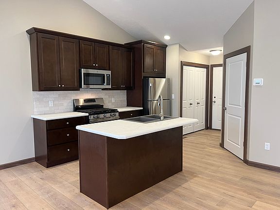 Newly built luxury duplex for rent in desirable Lake School District. Be the first to live in this ranch-style home with 3-bedrooms, 2-bathrooms, and an attached 2 car garage. Offers an accessible open floor plan, with vaulted ceilings, and great natural light. The kitchen is equipped with gas stainless steel appliances, large walk in pantry, high-end cabinetry, and beautiful countertops. Convenient first-floor laundry includes washer and dryer. Plenty of storage space in the walk-in master closet and full basement. Enjoy the outdoors on either the covered front patio, or spacious rear patio with sizable yard. You'll feel at home in this quiet friendly community! Trash, water, sewer, lawn care, and snow removal included. No evictions, bankruptcies, criminal record, or Section 8. No smoking.