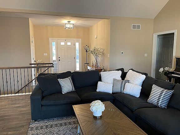 Beautiful 4 bedroom 3 bath ranch home in Schererville, IN. 1852 sq. ft. of finished space on main level and 1389 sq. ft. finished basement in Apple Tree Estates. Open concept great room with vaulted ceilings and beautiful gas fireplace. Eat in kitchen with soft close cabinets and quartz countertops. Stainless steel appliances (refrigerator, microwave, gas stove and dishwasher). Upgraded quartz counter tops in kitchen. Upgraded engineered hard floor laminate throughout. Main floor laundry room. Master suite with trey ceilings and walk-in closet. Master bath has granite counter tops and large linen closet. Bedroom 2 has a walk-in closet and ceiling fan. Bedroom 3/office has a ceiling fan. Recreation room with vinyl flooring. Hardwood master bedroom with master bath and custom shower. Bedroom 2 has carpeting and bedroom 3 has a walk-in closet and carpeting. Finished basement includes one full bathroom and recreation room with vinyl plank flooring. Bedroom 4 has a walk-in closet and vinyl plank flooring. Basement also includes two large storage areas. Fully landscaped lot with underground sprinkler system in front and backyard. Backyard is fenced with PVC fencing. Gas heater and garage door opener in garage. Brick front exterior with vinyl siding on sides and rear. Minutes to Illinois border, close access to shopping and Route 41/30 corridor. FULL FEATURES: Architecture Style: Ranch/1 story/Bungalow Exterior Type: Brick, Stone, Vinyl Beds Above Grade: 3 Cooling System: Central Air Heating System: For Ed Air, Natural Gas Appliances: Built-In Dishwasher, Portable Gas Range, Portable Microwave & Refrigerator with bottom drawer freezer Main Level Primary Bedroom: Yes Fireplace: Yes Pool: No Parking Type: Garage - attached, Garage Door Opener, Off Street Parking Parking Spaces: 2 Room Count: 9 Square Feet: 3241 Acreage: 0.28 External Features: Covered Porch, Patio ROOM INFORMATION: Kitchen: 16.30x30x9 - Main Level Primary Bedroom: 15.40x13.70 - Main Level 2nd Bedroom - 13x11.10- Main Level 3rd Bedroom - 13.70x13.40 - Main Level Great Room - 21.70x19.50 - Main Level Laundry- 9.60x8 - Main Level Breakfast Room: 10.60x9 - Main Level 4th Bedroom: 18.2x13.9 - Basement Recreation Room - 45x14 - Basement Schools: School District: St. John - Lake Central School Corporation
