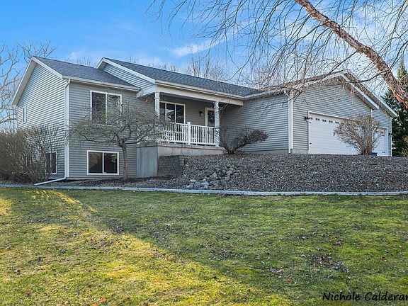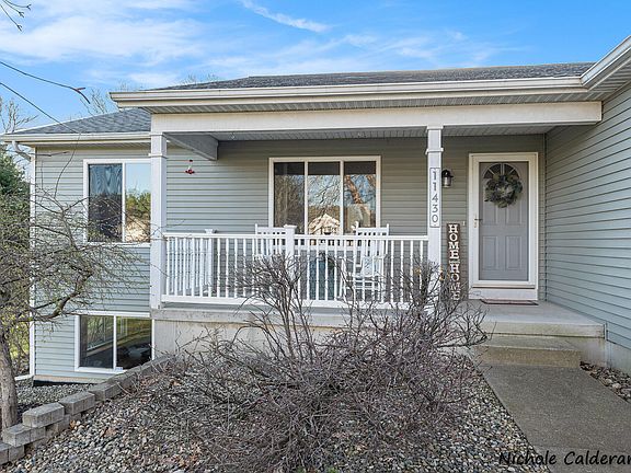 Fall in love with this captivating 3 bed/3 bath home! With over 2,200 square feet and soaring cathedral ceilings, you cannot help but relax as soon as you walk in the door. Key features include a spacious primary bedroom with on-suite bathroom and walk-in closet, a walkout basement complete with a family room and wet bar, and a hot tub! Huge four-stall garage and a storage shed means plenty of space for tools and toys. Many updates throughout, including new kitchen countertops and underground sprinkling. And with a new roof in Sept 2023, you can rest easy knowing your investment is protected! Situated on a large 1-acre lot with wooded view in a quiet neighborhood between Greenville and Rockford, you can enjoy both privacy and convenience! Showings begin Wednesday, 4/10/2024.