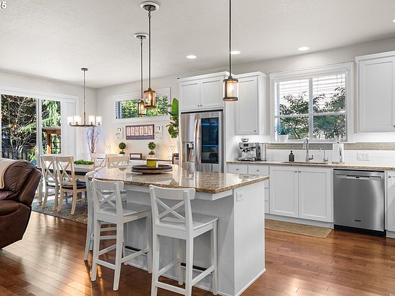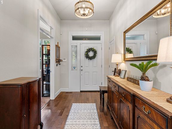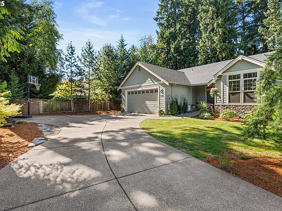 Welcome to your own private retreat — a thoughtfully designed one-level home that combines comfort and convenience in every detail. Step inside to the maple floors that flow through the living areas. The open concept kitchen with granite countertops, pantry storage, and an island with bar seating. The family room invites you to gather around the cozy gas fireplace, framed by custom built-ins and the dining room opens to the backyard with a slider—perfect for easy indoor-outdoor living. The spacious primary suite offers double sinks with quartz countertops, a walk-in closet, and a low-step shower. While the office/den with vaulted ceiling and closet provides flexible space for work or a 4th bedroom. There is a convenient laundry room with sink, storage, and tile flooring too.Out back, the private yard is truly an extension of the home. Designed for gatherings and relaxation, it features a large patio, gazebo, BBQ station with cover, patio lights, and raised garden beds. Fully fenced and surrounded by lush greenery, it’s your own private escape—perfect for both quiet mornings and lively evenings with friends.2 car garage converted to a McMenamins-style game room—great for fun gatherings, and easily converted back if you prefer!This home’s tranquil setting offers a sense of escape, yet you’re just minutes from nearby amenities and the heart of Tigard. Whether you’re relaxing indoors or enjoying the peaceful outdoor spaces, this home offers the perfect blend of privacy, serenity, and comfort.
