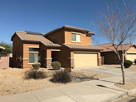 Fabulous home with open floorplan and 4 bedrooms. Attractive stacked stone exterior and front porch sitting area. North/South exposure. No homes behind and single stories on both sides for privacy. Wood & tile flooring downstairs, stainless steel appliances, double oven, upgraded cabinets. Reverse osmosis water filtering and newer soft water system. Stairway w/ beautiful iron stair rails. Large master bedroom suite w/ spacious walk-in closet and dual vanities. Ceiling fans and 2'' blinds throughout. Huge backyard with covered patio, along with sprinkler system and auto timer if grass is desired. Beautiful mountain views, green parks, and walking paths nearby. Conveniently located near shopping and freeway.