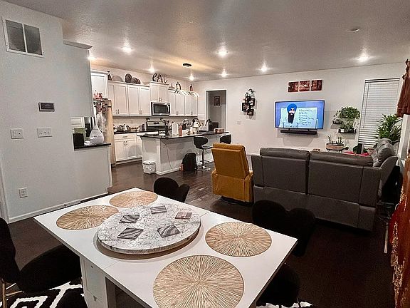 Appliances include a refrigerator, microwave, gas stove, washer, and dryer in the unit. There is an attached 2-car garage with a storage area. Interior Features: Kitchen Island, granite countertops, eat-in kitchen, Smart Thermostat, wired for data, open floor plan, it has been smoke-free, pantry, master bedroom walk-in closet, tile, carpet, and hardwood. There is a large sliding glass door that leads to a small side yard that has a cement slab and an artificial grass area. The main level is an open floor plan with a gorgeous kitchen, an extra large island, living space, office/work room. The second floor has 3 bedrooms, 2 full bathrooms, laundry room and 2 linen closets. There is a porch to enjoy the evenings with a large front grass/greenbelt area for kids to play. Basement is unfinished for extra storage, play area (Ping pong, Billards) and Gym.