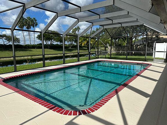 ANNUAL RENTAL- Beautifully Renovated West Boca Raton Pool home with 4 bedrooms, 2.5 bathrooms and office with built ins. This large home features porcelain floors throughout, vaulted ceilings (no popcorn), eat in kitchen, dining room and living room. The home features a gorgeous kitchen with new stainless steel appliances, quartz countertops and a large island. A spacious screened porch overlooks a free form pool, with a large backyard overlooking a serene canal view with no backyard neighbors! Plenty of storage in the home with lots of large closets and built in closet systems. The home is energy efficient with newer AC, LED lighting and the sprinklers are on a well for low water bills. This family friendly house is located in the desirable Island Lakes with a 24 hour/ manned gate. A rated school zone Courtesy of Regency Realty Services Ref# 10842976
