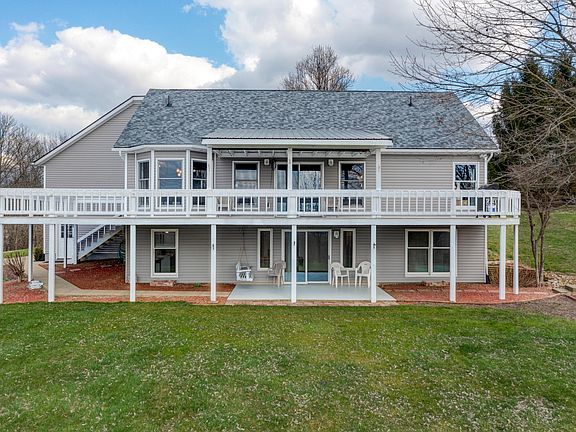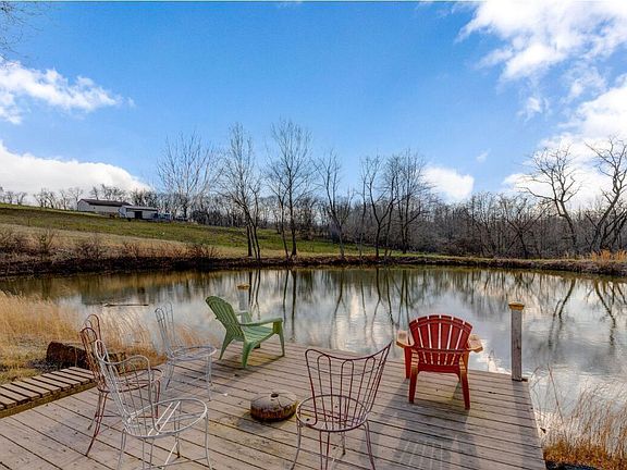 This home is a retreat with beautiful views of a pond, woods, & 5.84 acres. This home has 2,600 sq. ft. of finished living space with 4 bedrooms, 3 full baths, walkout lower level, & wraparound deck. Main level has a large living room with vaulted ceiling, eat-in kitchen with appliances & double pantry, a main bedroom with great views & private bath, a walk-in closet, guest room, guest bathroom, & family room. The lower level has a rec room with a pool table, walkout doors to a covered patio, storage room with a workshop, 2 bedrooms, & a full bathroom. Attached 2-car garage with attic storage, plus a detached one-car garage. A workshop building with an overhead door, 220-amp electric, & radiant heating. A new roof, vinyl siding, & central air were installed on the house in 2022.