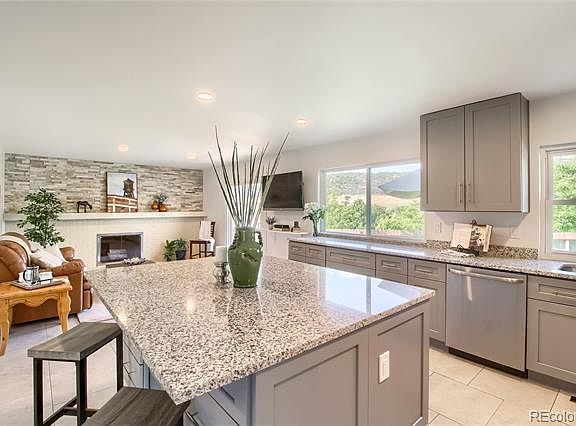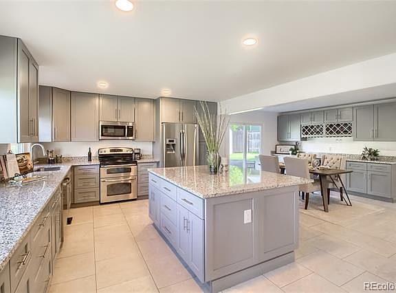 Fall in love with this beautifully updated 3Bed/3Bath home plus bonus office/workout/flex space, in highly sought after Ken Caryl subdivision! Tucked into a cul-de-sac, this home features a stunning kitchen remodel with slab granite counters, stainless steel appliances, double oven, new soft close cabinetry, and huge center island with lots of storage and breakfast bar seating. Open to the family and dining room, THIS will be the hub of your new home! Perfect for entertaining with a beautiful custom-built-in hutch with more storage, new wine refrigerator, built in wine rack and serving station. Beautiful marble & tile detail throughout. Enjoy gorgeous mountain views from the large privacy-fenced back yard, kitchen, family room, master, and one secondary bedroom! Enjoy the amenities of Ken Caryl including 3 pools, miles of bike trails, equestrian center, tennis courts, fitness center, and community garden!