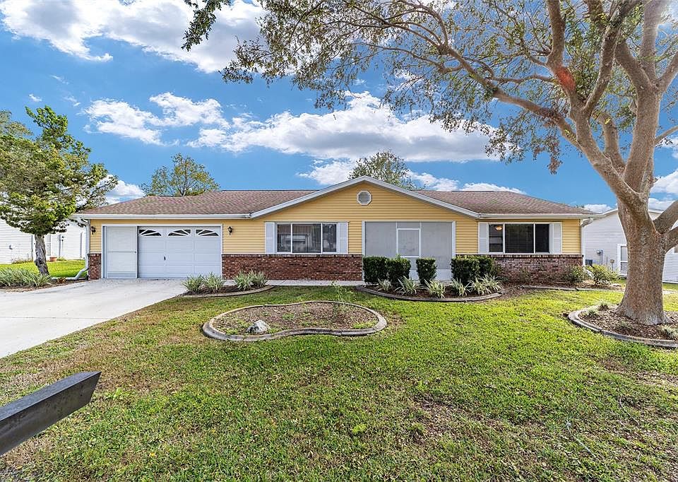Welcome to Oak Run! Loaded with activities and Clubs to meet all areas of interest as an Active Adult community. Beautiful Williamsburg model located on large retention area offering a great private backyard. This home offers 3 bedrooms, 2 baths, split bedroom plan, cathedral ceilings and an enclosed lanai wtih Air. Enjoy the updated kitchen with soft close cabinets, new Stainless appliances, casual dining area, pantry and a breakfast bar. The primary bath has dual sinks, tub and separate shower. Walk in closet. Two of the bedrooms have carpet and Laminate flooring for easy maintenance. Roof replaced in 2017 and AC Fan motor replaced in 1/2019; 2 new hot water heaters; and 2 new solar tubes. Low maintenance fee includes Fitness center, pools, tennis, security and so much more. Enjoy the Aqua Sports Club which provides an indoor heated pool. And yes, there is 18 holes of championship golf! Located in SW Marion County, so very close to shopping, restaurants and medical care. Truly a great buy priced for a quck sale! Furniture package available separately.