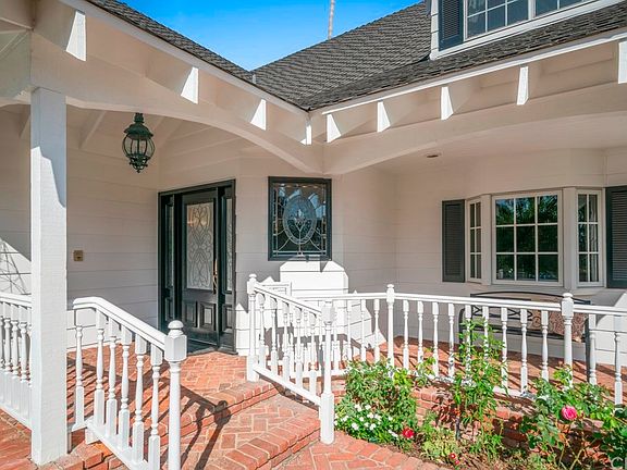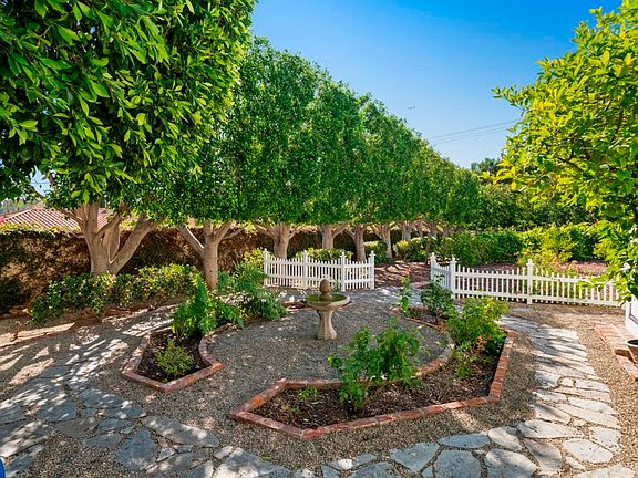 Charming private country estate with two automatic gates. This exceptional home is designed for indoor/outdoor living.The leaded glass foyer leads into casual elegance. A gorgeous chef's kitchen has coffered ceilings, Dacor appliances, custom cabinets,drawer dishwashers, island w/prep sink, pullouts, hardwood floors, bay breakfast area. A formal dining room opens into a living room. Cathedral ceilings in communal rooms and Master retreat. Expansive Master features fireplace, custom cabinetry, walk in closet, safe, coffee bar, private office, and balcony through french doors. All bedrooms are full ensuites with walk in closets. Adjacent upstairs bedroom has french doors leading to the balcony. The family room has dramatic open beamed cathedral ceilings, wet bar with 2 wine/beverage refrigerators, bay window and separate private entrance ready to convert to inlaw quarters or rental unit. Currently hidden, a full bath just needs completion. Living room opens to the pool/spa area through french doors, hardwood floors, bay windows, fireplace. Hidden doors hide a butler's pantry and storage room. The bonus room has pool access through two sets of french doors and bar into the family room. On almost ½ acre, lawn, vinyard, berries, fruit trees, fountains create a peaceful country setting with surround sound and water saving technology. Walking distance to Arroyo Elementary, Hewes Middle, and Foothill High. Close to Tustin Marketplace, The District, Old Towne Tustin, Peter's Canyon.