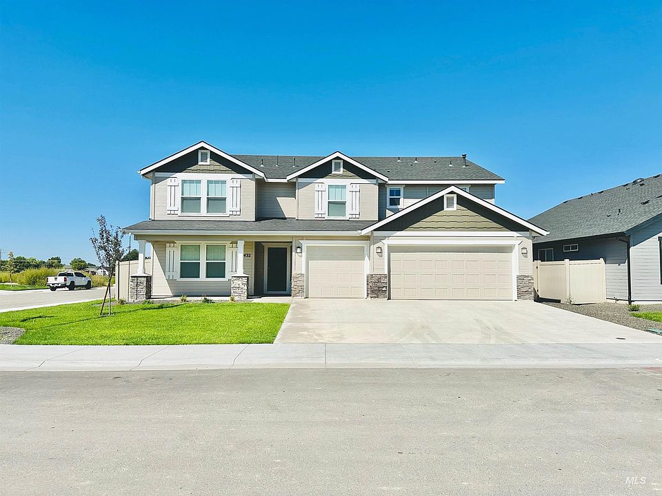 I Ready NOW! Don't wait for a build job to be completed when this gorgeous home is ready for you! It's a clean blank slate with high ceilings and tons of natural light to welcome you in. This craftsman-style home offers space for everyone including a main level guest suite with a full bath and walk-in closet. A main level office with beautiful french doors. Kitchen is equipped with quartz countertops and island, a gas range, and walk-in butler pantry with additional cabinets and storage options. High ceilings throughout the home and grand views from the second level stairs, hallway, and open loft overlook the great room. The upstairs features secondary bedrooms, laundry, and primary bedroom with soaker tub and a massive walk-in closet. Situated on a corner lot with landscaped front and side-yard, boasting a large fully fenced backyard with a spacious covered patio, gas bib for grilling, and upgraded exterior lighting. This one won't last long! Vacant and Easy to Show!