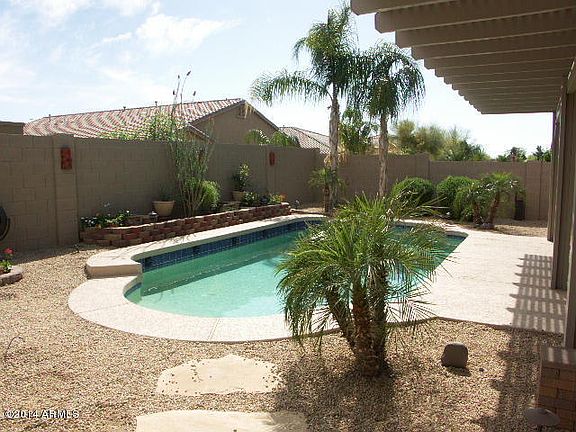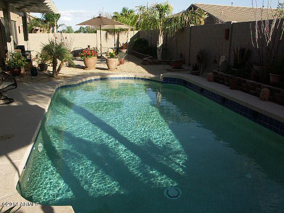 Beautiful backyard and 15x30 pool. Brick paver patio and block privacy walls. Open kitchen - family room concept with Corian counter tops, solid cabinets, undersink RO, island pendent lighting. 3 full baths, Carpet in master bedroom and living room, 12x12 tile in the rest of the home. North/south exposure, desert landscaping front and rear yards. Sunscreens. Marble tub w/jets in master bath/ glass block windows. double sink J/J bath w/bedrooms 2/3. 2.5 car garage. Screens at French doors (fam rm). Jenn-Air dbl wall oven. Cabinets in family room. Aluminum (12' x 38') pergola over patio. Landscape lighting in back yard. Security door, drip water system on timer, whole house soft water system. gas water heater, this home has been hand measured and is +3650 sqft heated/cooled