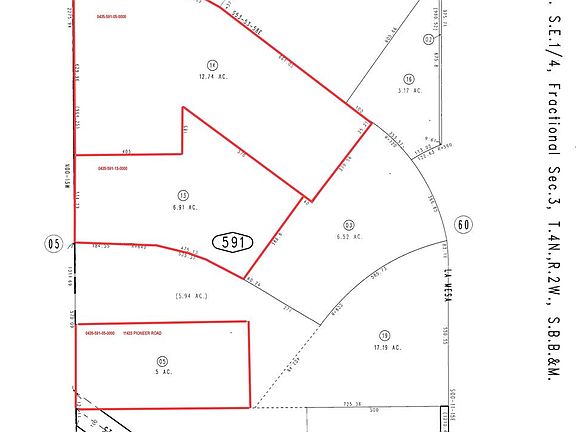 Great vacant land parcel adjacent to HWY 18. Value in the land. BEAUTIFUL VIEWS. Right off HWY 18, no long dirt road to drive. Seller also selling parcels 0435-591-13-0000 6.91 acres $51889 and parcel 0435-591-14-0000 12.74 acres $95550, all on Pioneer. Make it a package purchase! Existing homes at end of street, unknown status regarding utilities, buyer to verify / investigate.