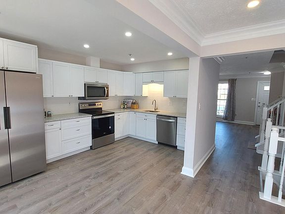 COMPLETE renovation end brick unit! New large kitchen with white shaker cabinets, stainless steel appliances, soft close cabinet doors / drawers, quartz countertops, waste paper pull out, Microwave vents to exterior, Multi-function stove with air fryer, convection, self cleaning, dual element, warming, melt. Dishwasher with 3rd tray for utensils. Vinyl plank flooring all levels, carpet in bedrooms. Kitchen opens to dining room with atrium door leading to composite deck and composite fenced back yard. LED lighting through out; dimmable in kitchen and dining. All 4 bathrooms: New vanity /sink /mirror /light /faucet /tile /floor. Primary bedroom closet extended. All closets have hanging & shelving systems. NEW Windows 2023. New roof 2021. New HVAC 2020. New water heater 2019. All-house surge protection device. Renovation Permits / warranties: see documents. Desired elementary school. Lots of storage/closet space. Close to MARC train, route 1. Easy parking.