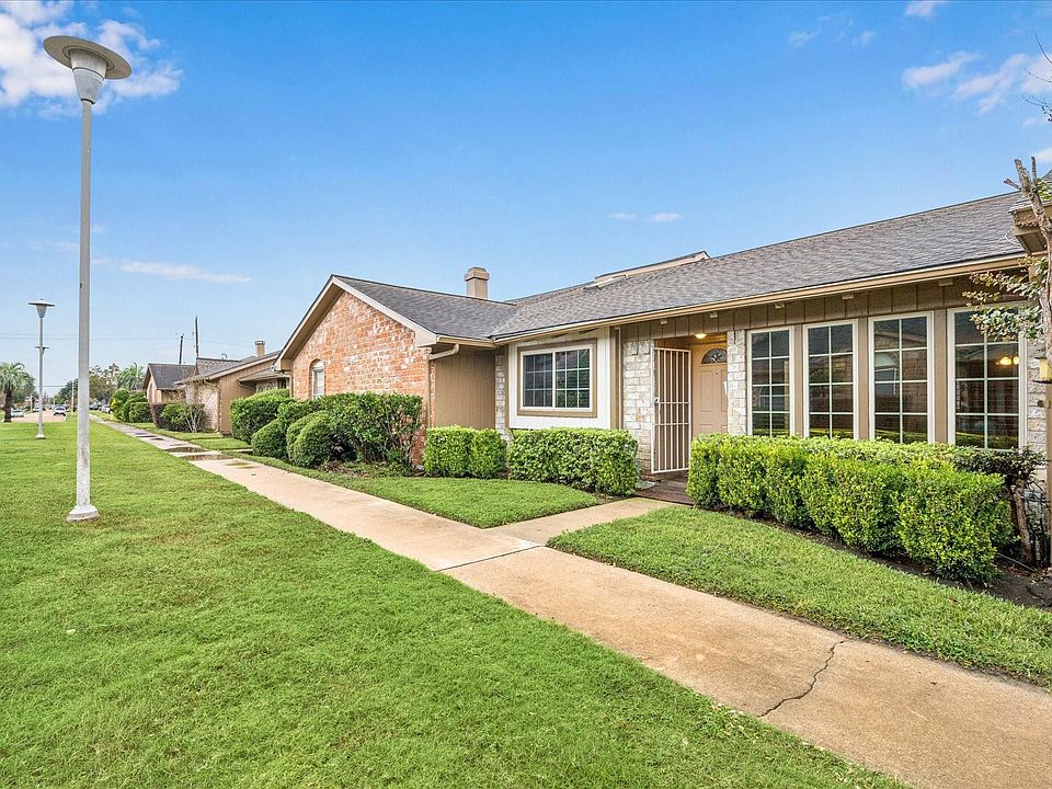 Looking for a place to call home, then look no further than this lovely and well maintained 1 story townhome, nestled in a great location with endless dining/ shopping options closeby. This beauty features gorgeous and gleaming bamboo floors, an open and sprawling layout of the dining/ living areas, a wood-like accent wall in the dining area that adds a touch of style, energy efficient windows, recent HVAC system, a beautiful large kitchen with plenty of storage space, spacious bedrooms with walk in closets, a charming outside patio with a wooden deck to relax, and a large, detached 2 car garage with an automatic door opener. Per the seller, the home has never flooded and sits at a slightly higher elevation than other homes in the community. Low HOA fee covers water, trash pickup, and outdoor paint/ maintenance. The convenience of being able to hop on to I 45 or Beltway 8, not to mention Hobby Airport only a few minutes away by car makes this an ideal location. Come see yourself!