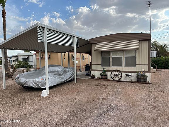 A gem of a property awaits in this ideal 55+ Community. This home gives you just the perfect amount of space to relax indoors with a wide open kitchen that offers a great amount with an open concept living room. This 1 bedroom home has a great 12X8 addition that is perfect for that second living space or private office getaway. The roof has been newly recoated to give long term security. New double paned windows, 2 new window air units and exterior paint have been recently done on the home. A covered patio and carport plus a detached storage shed gives you all that extra outdoor space you would want as well. This is the perfect place at the perfect price with a low lot rent to boot! The community features a pool, clubhouse with fitness center, library, laundry facilities and so much more. Your Arizona getaway is waiting!