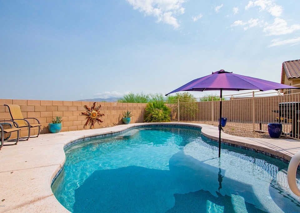 OPEN HOUSE SATURDAY FROM 11-2PM. HOME WILL BE NOT OCCUPIED AND AVAILABLE TO WALK THROUGH! Welcome to the desirable Community of Mountain Vail Estates. Spacious open floor plan, beautiful tiled floors, soothing palette, recessed lighting, window blinds, & ceiling fans. Center kitchen island, granite counters, SS appliances, pantry, & plenty of wood cabinets. Generous sized bedrooms, plush carpet, ample closets throughout, 3.5 baths, & interior laundry room. Bonus attached guest quarters w/a kitchenette, bedroom, bath, & laundry! Enjoy the fenced sparkling pool, covered patio, & endless blue skies.