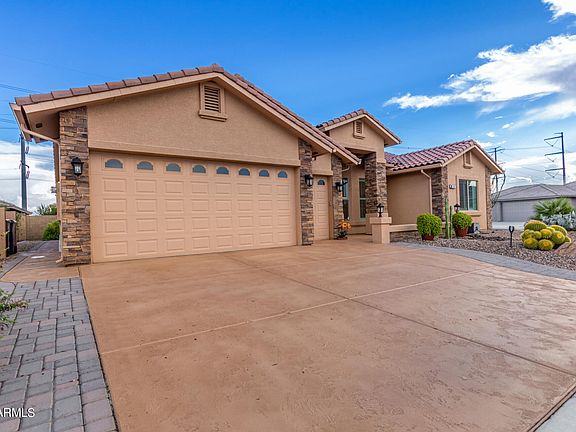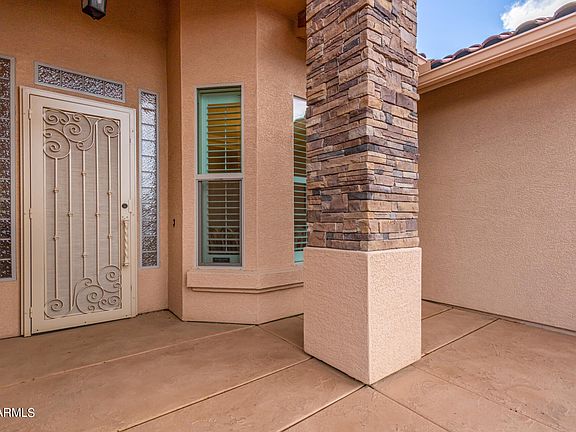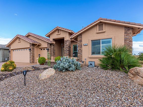 Desert landscaping. Every structure improvement possible was done when home was built. One owner seldom lived in. Split floorplan. Two car plus golf cart garage. Upgrades in every room!!!