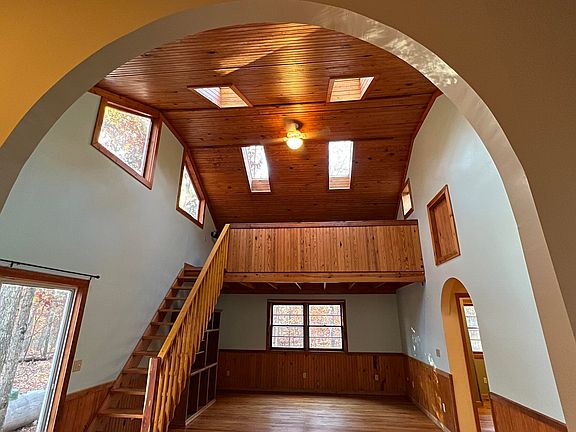 Situated in the middle of the private community, Greenwood Forest, is this 4-bedroom home on 4.71 acres. This... is no average home. Custom built in 1997 with features unique to this house, including a 20 ft ceiling in the living room with a loft, wood ''car siding'' ceiling with four skylights and high east facing windows, which, along with the sliding glass door produces luxurious light into the living space! Another feature that you may love is the arched entries into the hallway, kitchen, and laundry room. The home has hardwood flooring throughout, and LVP in the newly remodeled bathroom. The kitchen features custom solid wood cabinets and appliances pictured all stay. With central heating and air you can keep the home as comfy as can be, or enjoy the peaceful wooded outdoors from the mostly rebuilt wrap-around deck. On rainy days you can sip your coffee from the covered front. The home is mostly maintenance free with Hardie Plank Lap Siding (fiber cement boards that cannot rot) and Hardie Trim which were recently installed and painted, along with fresh paint on the soffit and fascia. Greenwood Forest is a 1,000-acre community that borders the Ozark National Scenic Riverways, a 125 sq mile National Park created to protect the Current and the Jacks Fork rivers. The community of Greenwood was created to protect the forest and limits the removal of trees and also does not allow hunting. Owners in the community must adhere to the Indenture of Restrictions, and are welcome to use common land areas, community pavilion, and hiking trails. Nearby in SW Missouri are many clear rivers, lakes, National and State Parks, and scenic drives. Are you ready to experience the outdoors from the comfort of this comfortable cabin?