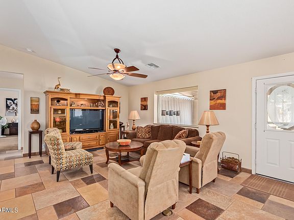 This is your chance to own this adorable fully furnished home in Sunland Springs Village! This 2 bed, 2 bath property offers a 3+car garage & a cozy south facing front porch. Perfectly flowing open layout features, vaulted ceilings, trending paint, so much natural light & bay windows. You'll love cooking in this impeccable chef's kitchen boasting wood cabinets w/crown moulding, tile backsplash & a breakfast bar. Primary suite showcases an ensuite w/dual sinks & 2 walk-in closets. Don't miss this rare 3c garage with extra space for a workshop/hobby room and/or golf cart with built-in cabinets. Continue to the backyard providing a relaxing covered patio, with a built in BBQ grill!