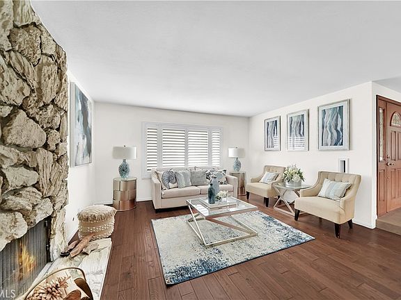 Rare Find! Single Level Home on Quiet Cul-de-Sac Street, Expanded to 2318 Square Feet with the Addition of an Impressive GIANT Family Room with Open Beam Cathedral Ceiling, Brick Fireplace with Raised Hearth, Custom Built-In Cabinetry/Shelving, Granite Wet Bar, and High Transom Windows makes this the Perfect home for a Growing Family and for Major Entertaining. The Open Flowing Light & Bright Floorplan is Beautifully Upgraded Throughout, Including: 5-Ton Central A/C, Rich Hardwood Flooring, Dual Pane Windows, Plantation Shutters, Mirrored Closet Doors, Raised Panel Interior Doors, Walk-In Closet with Built-Ins in the Master Suite, and a Remodeled Chef-Inspired Kitchen that Features Granite Countertops, Designer Tile Backsplash, Natural Wood Cabinetry, and a Breakfast Bar. As you Approach this Beautiful Home , the Professional Landscaping, Scored Concrete Driveway and Walkway, Stone Siding, Tile Roof, and Fountain by the Custom Front Door with 2 Beveled Glass Sidelights Catches Your Eye. Step Inside to the Travertine Foyer, the Elegant Formal Living Room, and Adjacent Formal Dining Room with Stone Fireplace and Bay Window. The Original Family Room with Cathedral Open Beam Ceiling and Skylight is Open to the Kitchen and the Added 2nd Family Room (So Much Wonderful Living Space). Both Bathrooms are Upgraded with Added Oak Cabinetry and Stunning Marble-Like Shower Surrounds. Sliding Glass Doors from the Master Suite and the Family Room Open to the Tranquil Backyard That Boasts a Spacious Covered Patio, Lush Lawn, Block Wall Fencing, and a Variety of Fruit Trees (Tangerine, Orange, Lemon, Apple, and Lime). There is also an Inside Laundry Room with Direct Access to the Garage. This Home is also Conveniently Located Close to the Elementary School inside the Tract and is Close to Mile Square Park, Shopping, and Dining. Short Drive to Beach!