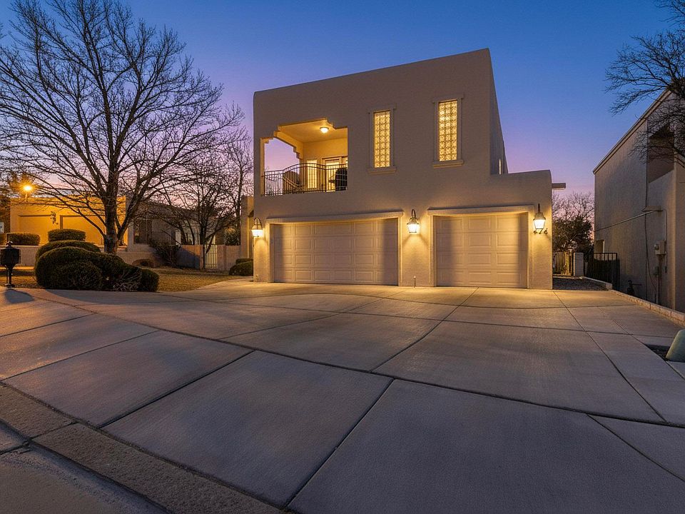 Terrific Traditional Styled Home in Tanoan East. The 1st level Floor Plan features a Formal DR, Family Room w/ wet bar, Spacious Kitchen & BF Nook, a Flexible Study/Office space and an Ensuite Bedroom with a 3/4 Bath, The 2ndLevel has 1 Large Master Bedroom with a Luxury Bath & a Balcony with a great Mountain View. There are 2 other Bedrooms upstairs, one of which has combined 2 BRs into One with Access to Huge Sun drenched Deck . This Bedroom can easily be converted back into 2 BRs which would make this home a 5 BR Home. There have been some updates including a newer TPO roof, the driveway was redone and some kitchen appliances. were updated. There is easy access to all the amenities offered by the Tanoan Country Club including 27 holes of golf, Tennis, Pool and Club. See it Soon !!