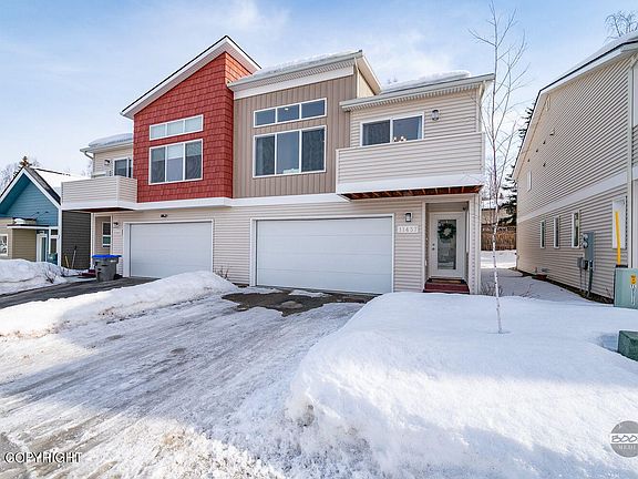 This duplex style condo offers expansive 12 ft ceilings in the grand great room with room for a home office, inviting dining area with southwest facing Juliette balcony, open chef's kitchen with oversized breakfast bar. Tranquil en-suite is located up, features coffered ceilings, private bath with dual lavs, shower & a spacious walk-in closet. Two additional bedrooms located on the first floor,full bath and additional storage. Coronado Park is eloquently located in the heart of Eagle River. A quick 15 minute drive from JBER or 20 minute drive from Anchorage's busy downtown allows you to escape to this quintessential bedroom community where majestic Mountains meet the wide open Alaskan skies, trails are longer, glacial rivers roar and we share one common idea, we love where we live! Ditch your lawn mower and your snow shovel! Exterior maintenance and lawn care are provided by the Homeowner's Association so you can 'lock it and leave it' and get out doing what makes you happiest, experiencing Alaska and all it has to offer!