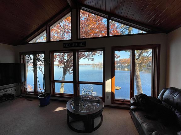 Beautiful ranch style home w/100ft of frontage on Crooked Lake w/gorgeous views from every room. Home was built in 1999 and features an open floor plan. The kitchen has maple cabinetry, hardwood floors throughout the entry, kitchen & dining room. The Living room offers a fieldstone floor to ceiling fireplace w/custom mantle and knotty pine cathedral ceiling. Main level master has his/hers closets and master bath w/jacuzzi tub and balcony. Additional bedroom and full bath on the main level. 3 season room perfect for having your morning coffee to watch the lake! Custom log railing leads to the lower walk out level which offers two additional bedrooms (one doesn't have a closet so a perfect office if needed), full bath, laundry & family room w/slider access to the back patio w/steps down to the lake. Property is owned and being leased by a licensed Real Estate Agent. Parking for up to 4 vehicles. Pets allowed for additional fee. Long and short term rental options available. Tenant pays gas/electric/sewer/trash Has Parking areas for up to 4 vehicles.