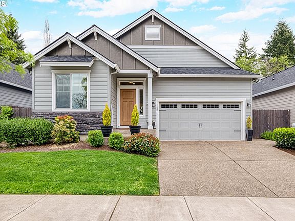 (Open house Sat 5-3 and Sun 5-4 from 1-3pm) Says Portland city but also considered Tigard! Stunning one-level craftsman home, nestled in a quiet, newer neighborhood offering both privacy and convenience to shopping, restaurants, schools, parks and freeways. Built in 2020, the home features luxury vinyl plank in the entry, kitchen, and spacious great room areas. The gourmet kitchen has slab granite countertops, an expansive island, stainless steel appliances (gas range)and walk-in pantry. An open-concept layout filled with natural light and beautiful finish work throughout. The private primary suite is separated from the other 2 bedrooms. Fenced and professionally landscaped, the backyard offers a covered patio, multiple raised garden beds, and lush greenery. Whether you're relaxing or entertaining, this space is a gardener’s dream and the perfect place to enjoy the outdoors year-round.