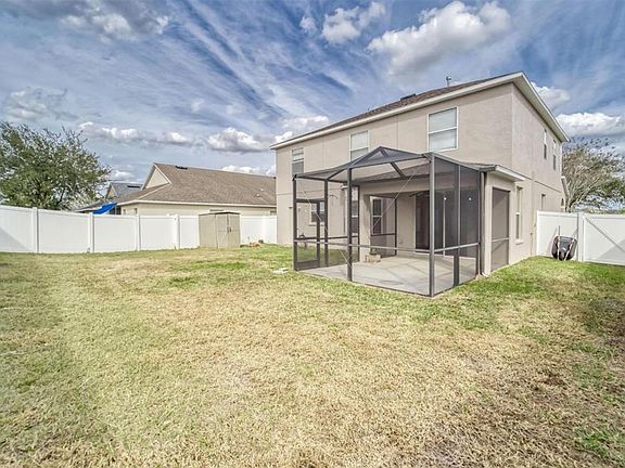 One or more photo(s) has been virtually staged. AN EXTENDED, SCREENED AND ROOF-COVERED LANAI IN A PRIVACY-FENCED BACK YARD is a key advantage of this large, lovely home amid all the other advantages of Panther Trace! Close to the neighborhood pool, playground park and excellent elementary school, this 2-story beauty delivers 4 bedrooms and 2.5 baths in more than 2,500 SF. A French-doored front office, stainless-steel appliances, cherry wood cabinets, tray-ceiling master suite and more are among the interior amenities. Downstairs floors are tile and engineered wood, while upstairs features recently upgraded luxury vinyl plank. You'll find extra space in places like the bay-windowed breakfast nook, and there's a welcoming front porch in addition to that back lanai to help this home "live even larger." It's all on a loop street so close to those community centers as well as other schools, shops, restaurants, recreation spots and commuter routes. You want to live here!