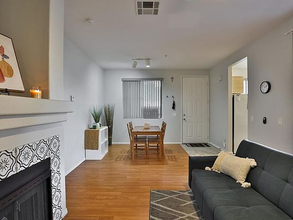 Welcome to this light and bright end unit condo, ideally situated on the ground level with the added charm of being a corner unit. As you enter, you'll first notice the open floor plan, designer tile around the fireplace and laminate flooring, creating a modern and inviting atmosphere. The remodeled kitchen is a standout feature, boasting new cabinets, counters, appliances, and fixtures. The roomy bathroom with a shower complements the overall updated and contemporary feel of the condo. The convenience of a full-size laundry on the private patio adds a practical touch, eliminating the need for trips to the laundromat. This condo is not just a home; it's part of a community that offers a range of amenities. Take advantage of the pool, spa, exercise room, BBQ area, and a play space for kids. The complex is designed to enhance your lifestyle and provide opportunities for relaxation and recreation. Conveniently located, this residence is close to dining, shopping, and entertainment options, ensuring that your daily needs are easily met. Beyond the immediate surroundings, you are in San Diego, a city known for its beautiful landscapes and perpetual sense of adventure. Whether you're enjoying the modern comforts of your remodeled condo or exploring the vibrant offerings of San Diego, this property offers a perfect blend of comfort, style, and convenience in a city where excitement and discovery are always at your doorstep.