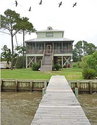 EH-UNIQUE HOUSE ON THE BAY. 10 FT CEILINGS, HEART PINE FLOORS. ALL STEPS, RAILS & DOORS SPORT BURL WOOD. TRANSOMS, STAIN GLASS WINDOWS, POCKET DOORS, CABINETS WERE ALL MADE OUT OF WOOD FROM 1800'S LIBRARY FROM DOTHAN, AL. JACUZZI TUB. BEDROOMS HAVE PRIVATE BATHS, TANKLESS WATER HEATER, 2 HVAC'S & WALK IN CLOSETS. WHARF/GUEST HOUSE WITH LR/BEDROOM/KITCHEN/BATH. OUTDOOR SHOWER/HOT TUB/STORAGE AREA/SPRINKLER SYSTEM/PILINGS ABOVE CODE, LARGER & DEEPER, EXTRA REINFORCED SUPPORT (PER SELLER) & HURRICANE SHUTTERS. BOAT LIFT & JET SKI LIFTS.